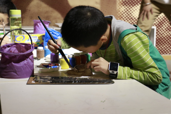 小朋友正在认真给恐龙化石上色。记者 吴思佳 摄