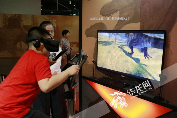 参观者现场体验VR“追上暴龙” 记者 吴思佳 摄