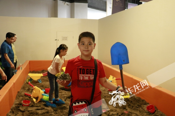 在挖掘体验区,小朋友可以体验化石发掘的乐趣。记者 吴思佳 摄