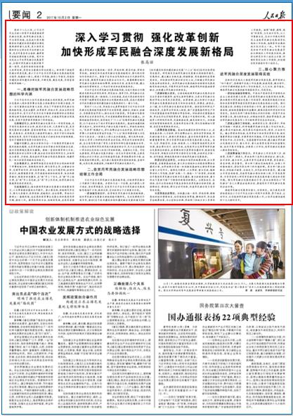 原标题:张高丽人民日报撰文:加快形成军民融合深度发展新格局