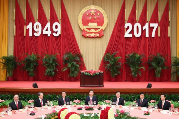 9月30日晚,国务院在北京人民大会堂举行国庆招待会,热烈庆祝中华人民共和国成立六十八周年。习近平、李克强、张德江、俞正声、刘云山、王岐山、张高丽等党和国家领导人与中外人士欢聚一堂,共庆佳节。 新华社记者 兰红光 摄