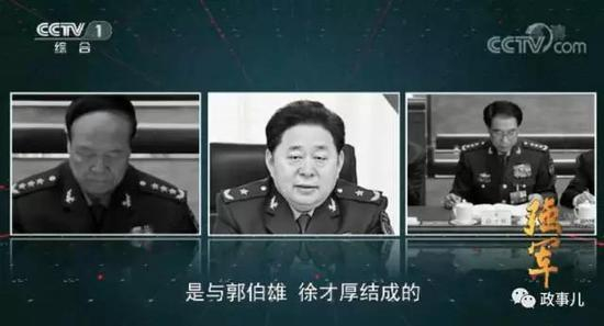 “政事儿”(微信ID:xjbzse)注意到,在该集中,郭伯雄、徐才厚、谷俊山三个“军老虎”被审查时的画面集中曝光。