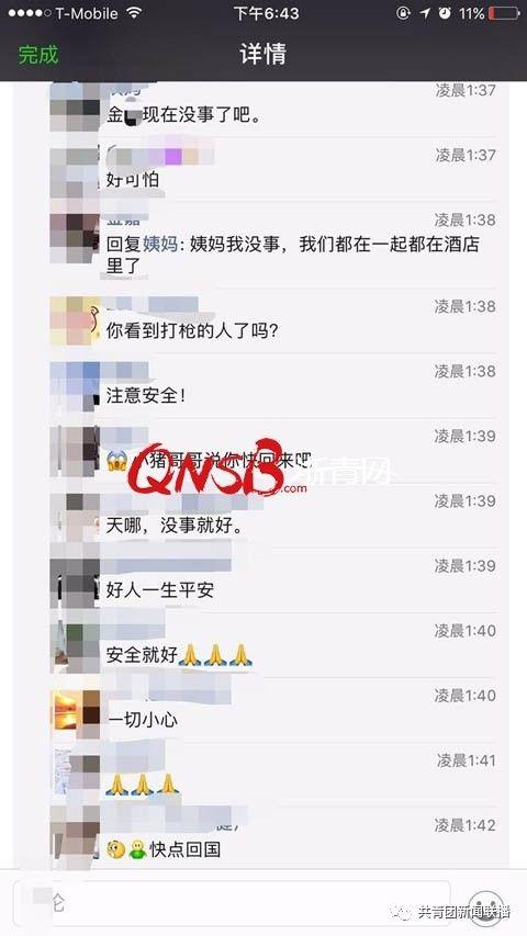 金女士跟同事缓过来后,立即给家人报了平安。之后,大家还跟房间里其他人聊起了天,一起微笑着合了影。枪击案发生后,金女士一直心有余悸,只在酒店眯了一个小时,就没再睡过觉了。