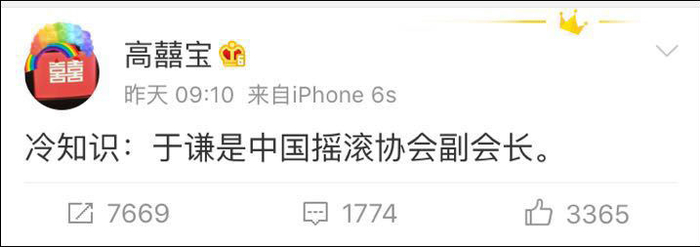 于谦是中国摇滚协会副会长……10月5日,网友@高囍宝 抛出的这个冷知识,让不少网友都傻了眼。