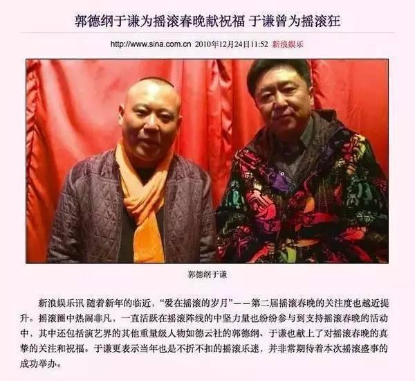 2010年时,第三届摇滚春晚即将举办,于谦拉着郭德纲就一起为晚会召开拍了段视频。
