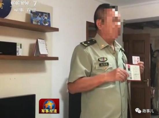 这名假少将在家中被查时,还身着军装、手持证件,向专案组展示。