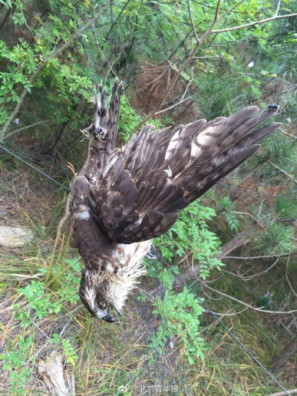 大连老铁山保护区现捕鸟网,十余只国家二级保护鸟类死亡。 本文图片均来自微博@北京青年报