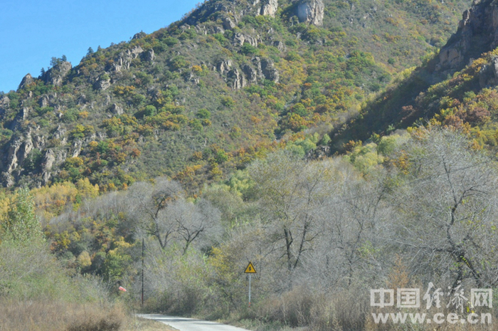 开往燕山大峡谷的公路路测的叶子已经很红了 游炎鑫摄