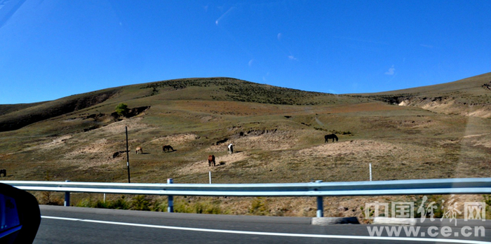 丰宁坝上路边吃草的马儿 游炎鑫摄