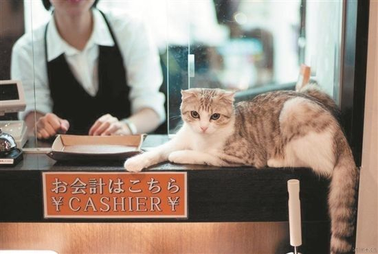 在“猫咪经济学”的驱动下,开一家“猫书店”或“猫咖啡馆”成为不少日本人的创业选择。比如在宇都宫市就有一家“猫书店”,店长从7年前开始让自己家8岁的母猫“小花”当店长,并在书店里专门设置“猫书区”,陈列各种关于猫的书、画本、写真集等,超过500本,据说如今日本全国这样的“猫书店”有十多家,而且还在继续增加。