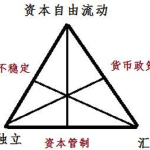首先,“不可能三角”是指一个国家不可能同时实现资本流动自由、货币政策的独立和汇率的稳定,即三项政策选项中,只能拥有两项。换句话说,在开放型的经济环境下,一国的金融政策始终面临“两难选择”(Dilemma)。