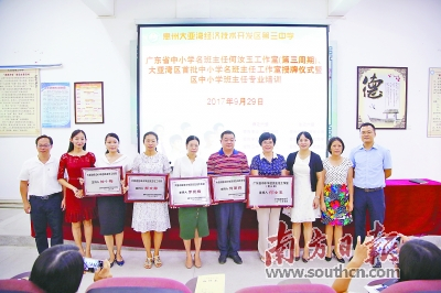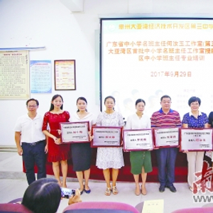 9月29日,广东省中小学名班主任何汝玉工作室(第三期)、大亚湾区首批中小学名班主任工作室授牌仪式暨区中小学班主任专业培训系列活动在大亚湾三中落下帷幕。就在此前不久,惠州的何汝玉工作室和许红工作室均顺利通过第一批省名班主任工作室(第二周期)期满考核,何汝玉工作室以97.2的高分名列同组榜首。