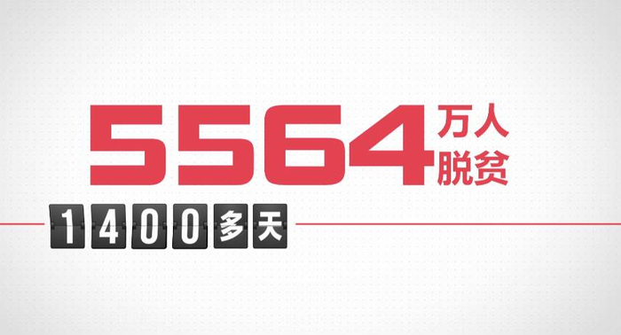 在过去的五年里,平均每三秒,就有一人跨过贫困线,在1400多个日夜里,总共有5564万人摆脱贫困,这相当于一个中等国家的人口总数。