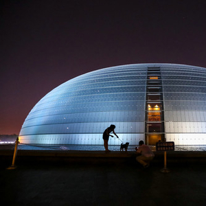 资料图片:5月10日晚,市民在被彩灯照亮的国家大剧院旁休闲。新华社记者 沈伯韩 摄