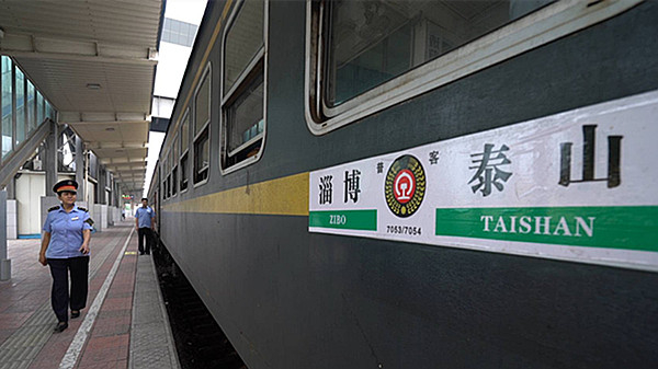 往返淄博、泰安的7053、7054次列车,是山东目前唯一的绿皮火车,从1974年开始运行,至今已有43个年头。车上没有空调、餐车、卧铺,沿用内燃机车车头提供动力。