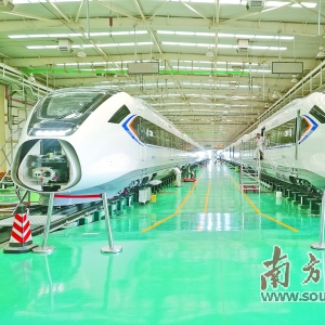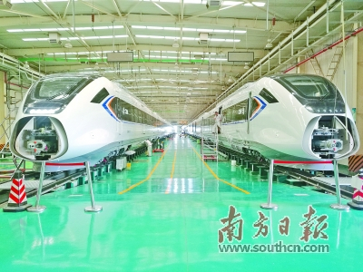 走进中车广东轨道交通车辆有限公司明亮敞阔的总装车间,十多辆车厢大致呈“U”字形排列,工人们正在忙碌地组装每一个零件。作为华南地区唯一的城际动车组生产企业,该公司今年下半年要为广珠城际铁路生产12列CRH6-200动车组,这也是其落户江门以来的最大订单。