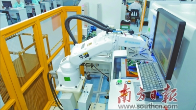 机器人自动分板设备、三维平台螺丝机、在线式自动化测试流水线、自动包装机……走进华阳通用的生产车间,只见宽敞高大的厂房里,各种“高大上”的现代化设备排列组合,井然有序,流水线上大大小小的机器轮番上阵,各类自动化生产线和工业机器人的应用悄然上演“机器人总动员”。