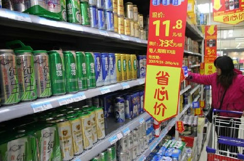 大连一家超市的啤酒区正在促销。(资料图片)