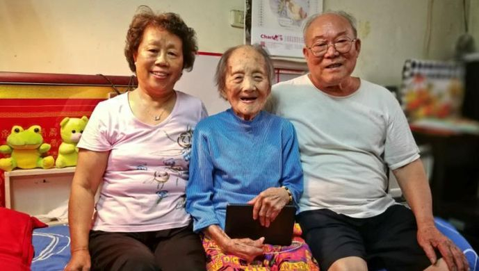 老人的儿女孙辈都很孝顺。老太太爱美食,女儿就根据她口味调理,每天现榨各种果汁给她补充维生素。老太太爱唱歌,有时会忘词,女儿抄来各类老歌谱提醒她。