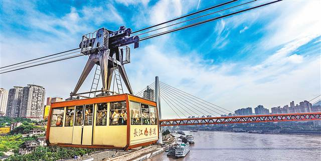 重庆长江索道始建于1986年3月,1987年10月24日竣工投入运行。索道全长1166米,运行时长约5分钟,是当时最便捷的过江交通工具。如今,凭借在空中观赏长江和两岸建筑景色的独特优势,长江索道更成为重庆接待游客量最多的景区之一,平均每天接待游客近1万人。