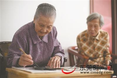 东莞时间网讯 重阳节来临之际,记者来到石龙敬老院探访了两位百岁老人,一位行动自如,能独自爬上3层楼梯;一位则刚过了100岁生日,最爱挥毫泼墨写书法。据了解,石龙敬老院里居住了百余位老人,他们大多都是八九十岁的长者。