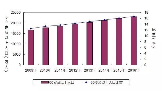▲截至2016年底,全国60岁及以上老年人口23086万人,占总人口的16.7%,其中65岁及以上人口15003万人,占总人口的10.8%。数据及图片来源:《2016年社会服务发展统计公报》,民政部