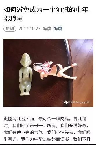 紧接着,冯唐写的一篇《如何避免成为一个油腻的中年猥琐男》文章,成功以对中年“老男人”的指指点点,吸引攻击群,被舆论吊打。