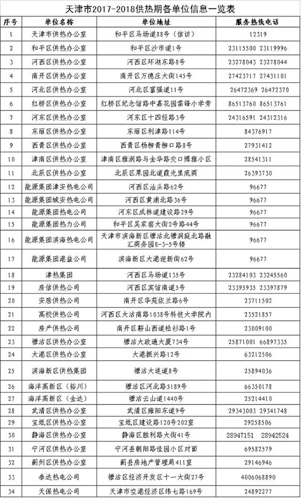 天津各大供热单位、管理部门最新最权威的值班电话表在此,有问题赶紧打电话~!