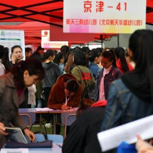 10月27日,京津冀学前教育类高校毕业生专场招聘会举行。图为招聘会现场。 中新社记者 翟羽佳 摄