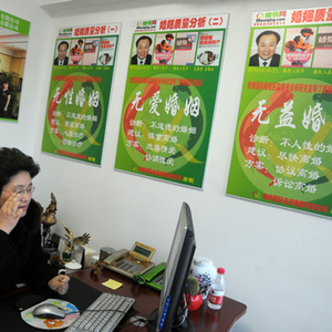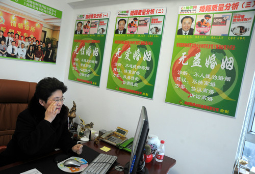 资料图片:2012年2月13日,上海首家离婚服务公司的婚姻咨询师在进行在线咨询服务。新华社发
