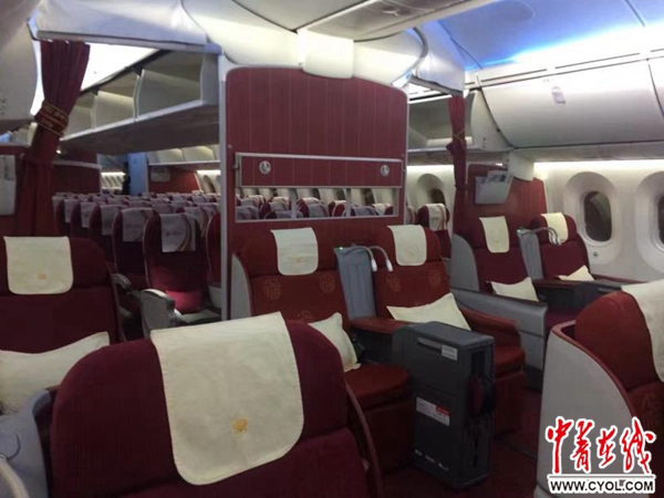 787梦想客机机舱内部展示。