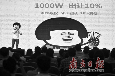 “双创”大赛决赛现场,蚊子动漫大打“表情”牌,通过自家在网络上大受欢迎的蘑菇头表情包现场路演。戴嘉信 摄