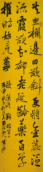 在重传统,厚古法的家传熏陶下,他少时即广涉名碑名帖,就此激起对书法的热忱,从戎四十余年,笔耕不辍。汉碑、晋帖的积累,加之刘炳森、董寿平、武中奇等大师的点拨,滋养出他豪宕雄浑、气宇不凡的书艺情怀。