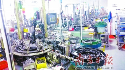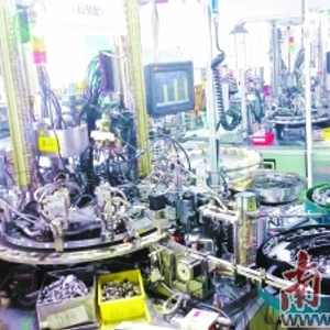 走进佛山天朋温控器有限公司(以下简称“天朋公司”)的生产车间,数十台精密的自动生产设备整齐排列:签字笔粗细的机械手稳稳地抓起纽扣大小的原材料,在一条救生圈大小的圆形生产线上,经过五六个部件的组装,不到一分钟时间,一个完整的温控器就诞生了。