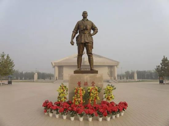 他的故乡在河北省新河县。从北京往南出发,沿京港澳高速公路行约250公里,再折向东沿青银高速行驶50公里,路边耸立着一块暗红色的指示牌——董振堂将军故里。