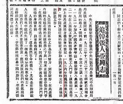 1933年1月7日,临时中央政府机关报《红色中华》报上发表了悼念张人亚的文章《追悼张人亚同志》,这是中华苏维埃共和国临时中央政府自1931年成立一年多来,第一次在其机关报上为悼念逝去的同志而专门发表的悼词,也是临时中央政府替这位为共产主义理想和中国人民解放事业而奋斗终生的“最勇敢坚决的革命战士”竖立的一座永远的丰碑。