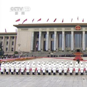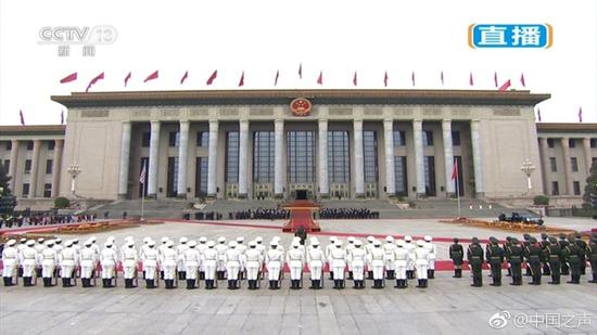 今天上午9时许,国家主席习近平在人民大会堂东门外广场举行仪式欢迎美国总统特朗普访华,随后与特朗普总统举行会谈。