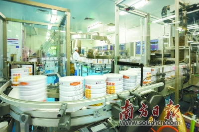 去年,完美公司迎来了两个FANUC机器人,它们最快可以120罐/分钟的速度,为每一罐食品放置干燥剂和脱氧剂,被称为“高能员工”,仪器前方,还有一个视觉识别系统,自动影像检测、剔除次品。据完美方面介绍,“机器换人”是产业转型升级的必由之路,既能够快速推进企业技术进步,又降低了用工和生产经营成本,提高劳动生产效率。