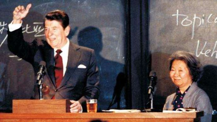 在热烈的掌声中,里根先讲了一段开场白:“我很高兴今天能和大家待在这里,因为我已经告诉过谢校长,我觉得我和复旦大学有一种家庭关系。你们看,谢校长和我的妻子南希,都在美国史密斯学院拿到了学位。”