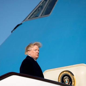 上午,在大风中,美国总统特朗普登上空军一号,乘专机离开了北京。同时,乘专机离开的还有中国国家主席习近平。