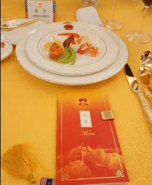 当晚6点28分,也就是宴会开始18分钟后,雷军又披露了国宴菜单: