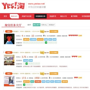 在“Yes!淘”的首页,有3个统计榜单,分别为“推广奖励信息”、“最新任务信息”、“每周发单排行”。其中推广奖励信息和最新任务时时滚动显示,每周发单排行按名次排列。