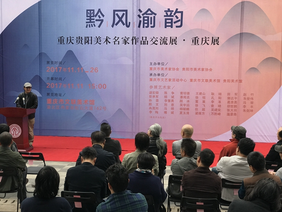 华龙网11月11日18时05分讯(记者 张义)一个以大山大水、山重水复,底蕴深厚、人文荟萃著称;一个以奇山奇水、山明水秀,积厚流光、风情多彩闻名。当二者结合在一起,会碰撞出怎样的火花?今(11)日下午,《黔风渝韵——重庆贵阳美术名家作品交流展•重庆展》在重庆市文联美术馆开幕,来自贵阳的40余位艺术家的作品亮相山城。