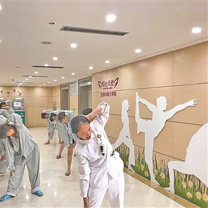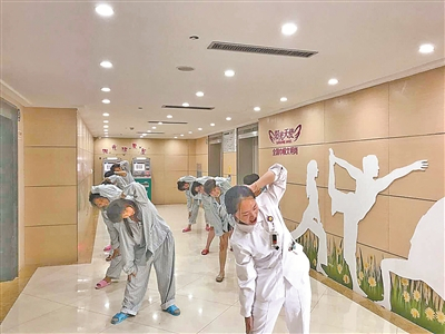妇科护士在带领术后病人做康复操。(陈敏 摄)