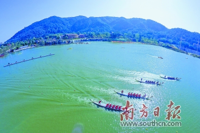 2016年在听音湖上举办的龙舟赛现场。西樵供图