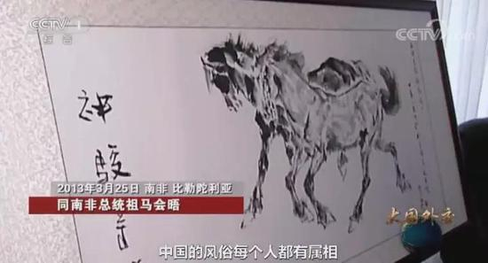 2013年3月,习近平出访南非同南非总统祖马会晤,就送给南非总统祖马一幅骏马图。这份礼物就是考虑到祖马的生肖属马,策马奔腾的良好寓意,也“预示着祖马的事业和国家的事业像千里马一样奔腾”。