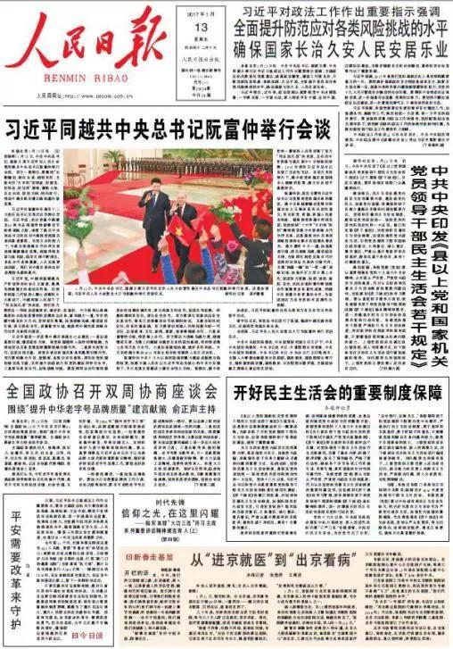 此外,习近平还精心挑选了今年1月份阮富仲到访中国时的人民日报。