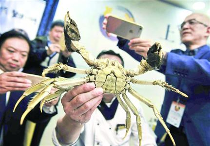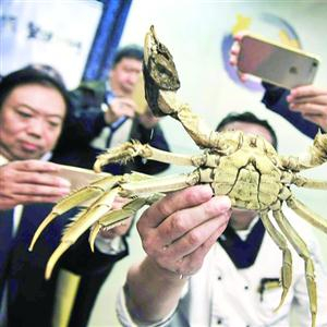 王成辉介绍,上海大闸蟹由于采用良种的比例高,其外形的美观度和整齐度较其它大闸蟹要好,“比如,上海本土大闸蟹具有‘腿长’这一显著的外形特点。”