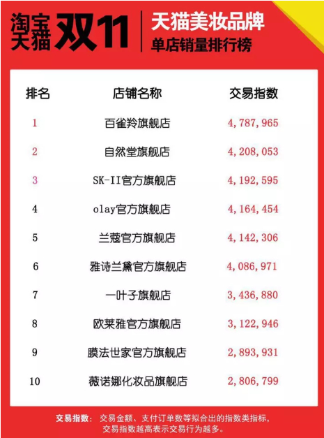 在化妆品领域,欧美、日韩品牌一直名列前茅,但在“双十一”中,中国本土品牌终于胜了一局。