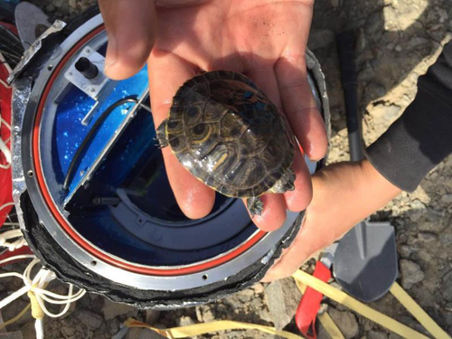 10月25日,一只名为“小云云”的黄头侧颈龟,坐着“气球”在两万米高空欣赏了一圈美景后,平安归来。